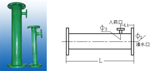 管道混合器內部固定安置了混合元件每個內安置3個組件。混合作用是通過介質在混合器內,反復被元件交叉、變位、分割、及組合來實現其分割。分散混合效果為99% 。該設備適用于水和污水處理,投加各種混凝劑、助凝劑、臭氧、液氧、酸堿中和……等用途可節省各種藥劑量,水頭損失0.4~0.9米。該設備具有體積小、混合效果好,無電耗、安裝維護簡便、耐腐蝕等優點。法蘭盤壓力 P= 2.5Kg/cm2。